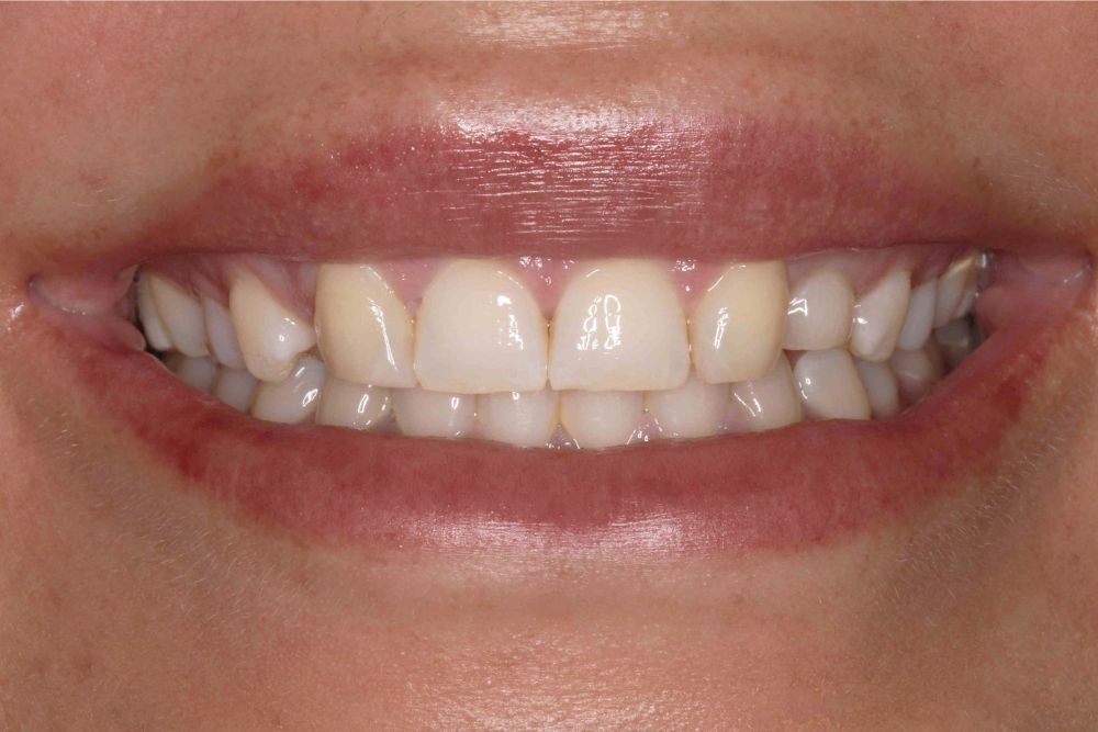 Custom porcelain veneers were used to correct tooth size discrepancies and create a more even, mature appearance. These veneers were carefully designed to blend with her facial features, lip line, and natural tooth shade for a seamless result.